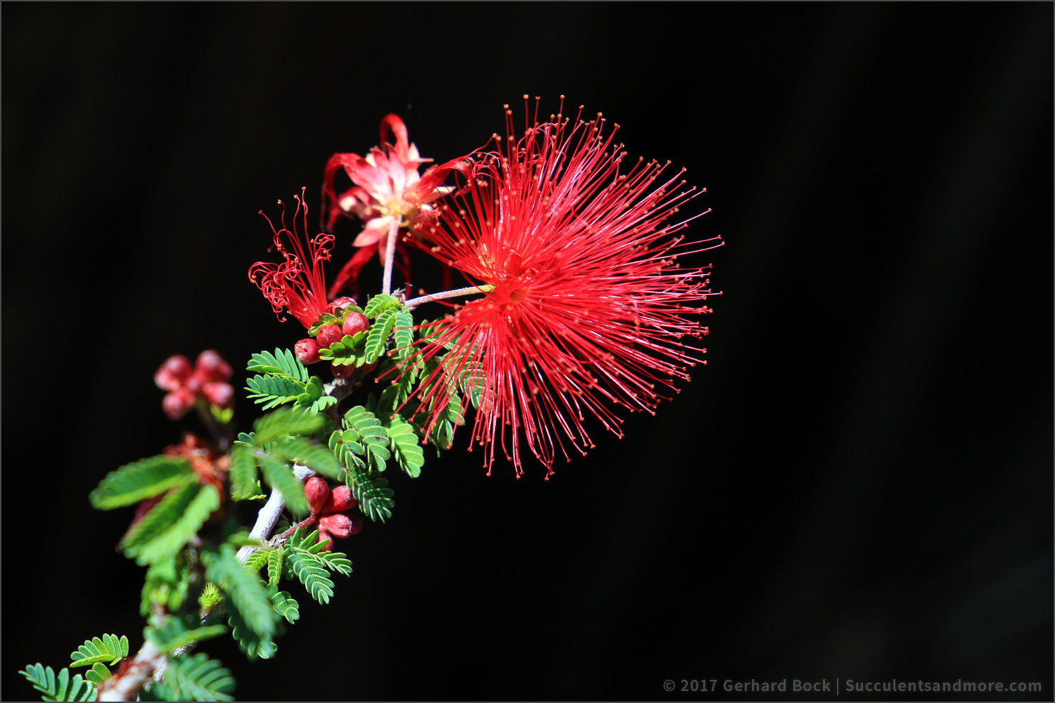 | Calliandra × ‘Sierra Starr’, a hybrid betwixt Calliandra eriophylla (pink fairy duster) in addition to Calliandra californica (Baja fairy duster) |