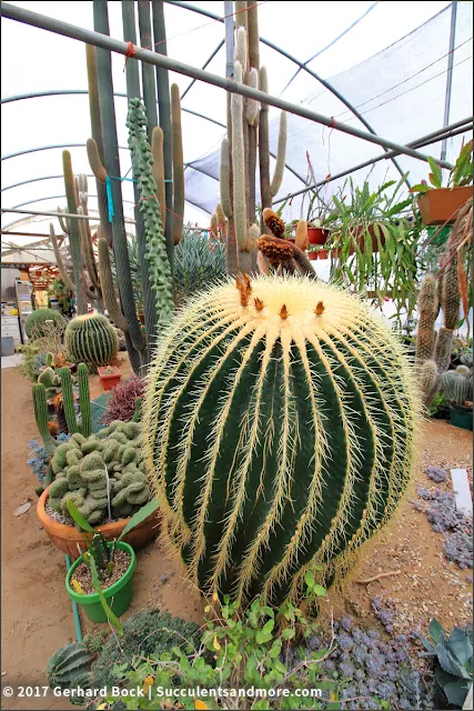 | (Left) Golden barrels inward all sizes. (Right) Yucca rostrata with a trunk! Something y'all most never see inward Northern California. Well priced at $79. |